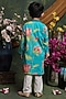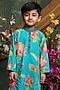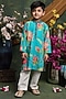 Featuring a turquoise kurta for boys in pure cotton base with floral print. It is paired with white pants. Style it with a watch and pair of mojris for a festive occasion or sangeet ceremony.