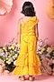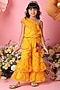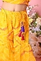 Featuring a yellow one-shoulder top for girls in georgette base with ruffles and print. It is paired with sharara pants. Style it with cute hair accessories and sandals for a festive occasion or haldi ceremony.