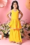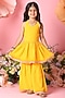 Featuring a yellow peplum top for girls in georgette base with stripes detail. It is paired with flared sharara pants. Style it with cute hair accessories and sandals for a festive occasion or haldi ceremony.
