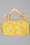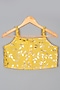 Featuring a yellow lehenga for girls in poly cotton base with foil print. It is paired with a choli having a square neckline and a net dupatta. Style it with sandals and hair accessories for a wedding, haldi or sangeet ceremony.