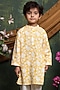 Yellow Pure Cotton Floral Printed Kurta Set For Boys