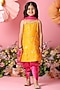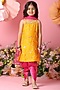 Yellow Silk Blend Embroidered Kurta Set For Girls