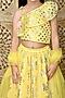 Featuring a yellow lehenga for girls in silk blend base with print. It is paired with a matching blouse and a net dupatta.