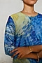 Featuring a blue kurta in synthetic dupion base with aari hand embroidery and print. Accentuate it with pants, hoop earrings and stilettos for casual outings or family gatherings.