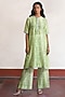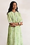 Featuring a green handcrafted A-line kurta in banarasi cotton silk base with digital print and metallic silver hand embroidery. It is paired with printed parallel pants. Accentuate it with stud earrings and heels for a festive look.