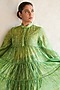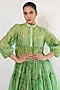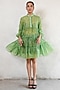 Featuring a green handcrafted knee-length tiered dress in cotton silk base with bishop sleeves and hand embroidery. Accentuate it with statement earrings and block heels for an evening look.