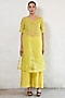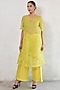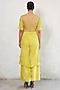 Featuring a lime yellow A-line handcrafted kurta in banarasi silk organza base with geometric detail. It is paired with banarasi cotton silk palazzo pants. Accentuate it with statement earrings and block heels for festive occasions.