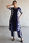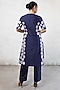 Featuring a navy blue handcrafted A-line kurta in banarasi cotton silk base with applique hand embroidery. It is paired with straight pants. Accentuate it with statement earrings and block heels for festive occasions.