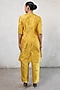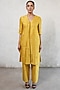 Featuring an ochre yellow handcrafted structured kurta in banarasi cotton silk base with applique hand embroidery. It is paired with straight pants. Accentuate it with statement earrings and block heels for festive occasions.