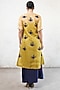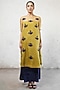 Featuring an ochre yellow handcrafted A-line kurta in banarasi cotton silk and banarsi silk organza base with applique hand embroidery. It is paired with a navy blue skirt having side slit detail. Accentuate it with statement earrings and block heels for festive occasions.