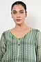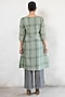 Featuring an olive green A-line handcrafted kurta in banarasi cotton silk base with geometric print. Accentuate it with pants, statement earrings and block heels for festive occasions.