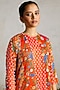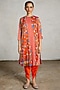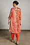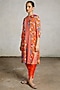 Featuring an orange kurta in banarasi cotton silk base with floral print and aari hand embroidery. It is paired with dhoti pants. Accentuate it with gold earrings and block heels for festive occasions or family gatherings.