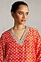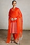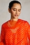 Featuring an orange kurta in banarasi cotton silk base with geometric print, bead work and aari hand embroidery. It is paired with pants and a silk organza dupatta. Accentuate it with gold earrings and block heels for festive occasions or family gatherings.