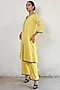 Featuring a pineapple yellow A-line handcrafted kurta in banarasi cotton siilk base with aari hand embroidery. It is paired with straight pants. Accentuate it with statement earrings and block heels for festive occasions.