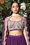 Featuring a purple lehenga in chanderi and net base. It is paired with a matching blouse having gold and pearl hand embroidery and a dupatta.