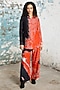 Featuring a red and black handcrafted shirt in banarasi cotton silk base with aari hand embroidery. It is paired with straight pants. Accentuate it with hoop earrings and stilettos for casual outings or evening wear.