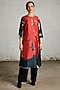 Red & Black Synthetic Dupion Hand Embroidered Kurta