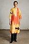Yellow & Orange Synthetic Dupion Hand Embroidered Kurta