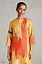 Featuring a yellow and orange kurta in synthetic dupion base with aari hand embroidery and print. Accentuate it with pants, hoop earrings and stilettos for casual outings or family gatherings.