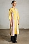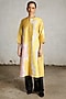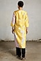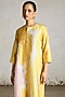 Yellow & White Synthetic Dupion Hand Embroidered Kurta