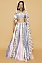 Featuring a multi-colored panelled lehenga in dupion silk and chiffon base with floral print. It is paired with a printed and embellished blouse, including a block printed dupatta. Accentuate it with meenakari jewellery and heels for a wedding, engagement or sangeet ceremony.