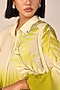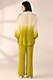 Featuring a citrus yellow ombre shirt in italian crepe base with patch work and hand embroidery. It is paired with straight pants. Accentuate it with stud earrings and flats for casual outings, brunches, sundowner or family gatherings.