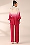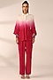 Featuring a crimson red shirt in italian crepe base with hand embroidery and elasticated waist. It is paired with straight pants. Accentuate it with stud earrings and flats for casual outings, brunches, sundowner or family gatherings.