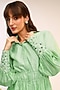 Featuring a kiwi green high-low shirt in chanderi silk base with hand and machine embroidery. It is paired with straight pants. Accentuate it with statement earrings and heels for an evening look.
