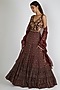 Featuring a maroon anarkali in modal satin base with zardosi embroidery and five tier gatherings. It is paired with a matching kota silk dupatta.