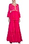 Featuring a pink choli in georgette base with flared sleeves, cutdana, sequins and beads embroidery. It is paired with matching gharara pants.