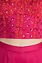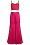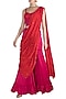 Featuring a red corset in modal satin base with cutdana, sequins and beads embroidery. It is paired with matching gharara pants and dupatta having scallop and chitta embroidery.