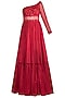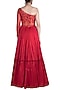 Featuring a red gown in modal silk base with self colour embroidery. It is paired with a matching pleated dupatta in net base having scallop and chitta embroidery.
