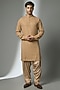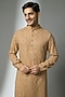 Featuring an antique gold kurta in georgette base with thread and sequin embellishments. It is paired with modal satin salwar. Style it with kolhapuri sandals for a festive occasion, cultural event, wedding or sangeet ceremony.