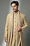 Antique Gold Silk Chanderi Zari Embroidered Sherwani Set