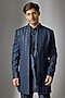 Featuring a dark blue front-open indowestern in jacquard base. It is paired with a silk chanderi kurta and cigarette pants. Style it with embroidered loafers for a festive occasion, wedding, sangeet or engagement ceremony.