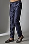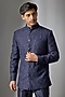 Dark Blue Silk Embossed Thread Embellished Bandhgala Set