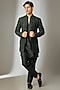 Dark Green Silk Chanderi Thread Embellished Indowestern Set