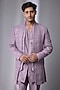 Featuring a lavender open indowestern jacket in dola silk base with thread and sequins embellishments. It is paired with a silk chanderi V-neck button down kurta and cigarette pants. Style it with shoes for a festive occasion, wedding, sangeet or reception ceremony.