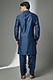Featuring a prussian blue kurta in silk base with mirror embroidery. It is paired with modal satin pathani salwar. Style it with mojaris for a festive occasion, wedding, engagement or sangeet wear.