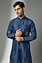 Prussian Blue Silk Mirror Embroidered Kurta Set
