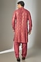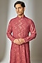 Featuring a raspberry red kurta in georgette base with sequins and embossed thread embellishments. It is paired with salwar. Style it with mojaris for a festive occasion, cultural event, wedding or engagement ceremony.