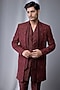 Featuring a wine indowestern jacket in silk chanderi base with thread and sequins embellishments. It is paired with a button down kurta and cigarette pants. Style it with shoes for a festive occasion, wedding, sangeet or reception ceremony.