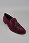 Featuring a pair of wine loafers in velvet base with nakshi, zari and dabka hand embroidery. It has leather lining, cushioned leather footbed and a 1-inch heel. Elevate your stride with timeless elegance and exceptional craftsmanship, perfect for any festive occasion or wedding ceremony.