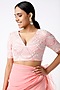 Featuring a rose pink blouse in silk base with pearl and zardosi embellishments. It is paired with a matching georgette saree.