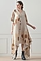 Featuring a beige asymmetric high low dress in cotton linen base with print. Style it with minimal jewellery and flats for brunch outings or casual day events.