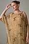 Beige Cotton Silk Floral Printed Kaftan Dress