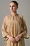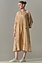Featuring a beige dress in cotton silk base. It is paired with a printed open jacket. Style it with stud earrings, heels and soft curls for a classy look. Ideal for a cocktail party.