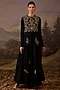 Featuring a black anarkali style dress in cotton silk base with embroidery. Style it with crystal earrings and sleek heels for a vibrant look, perfect for destination weddings or festive day celebrations.
