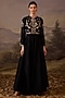 Featuring a black gown in cotton silk base with floral embroidery. Accentuate it with zircon jewellery, a clutch bag and heels for a cocktail, reception or evening celebrations.
