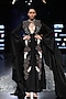 Featuring a black gown in cotton silk base with silk thread embroidery. It has long bell sleeves.